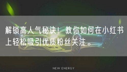 通过以上七个方面的努力,你可以在小红书上轻松吸引优质粉丝关注,解锁高人气秘诀。同时,还要注意保持耐心和坚持,不断学习和探索新的方法和技巧,让你的小红书之路更加顺畅和成功!