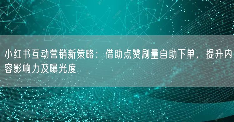 随着社交媒体的发展,小红书已成为众多品牌和营销人员争相入驻的平台。为了在小红书上获得更高的曝光度和影响力,许多新的营销策略层出不穷。本文将介绍一种新兴的小红书互动营销策略——借助点赞刷量自助下单,助力内容影响力和曝光度的提升。